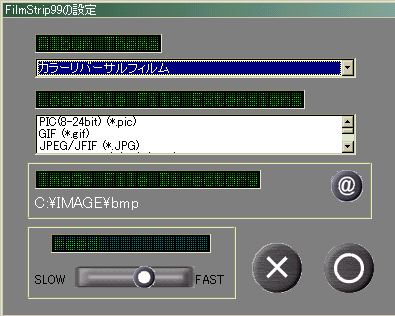というわけで、写真アルバム風のスクリーンセーバーを作りたい。つまりは、「スクリーンセーバーを作ろう。- FilmStrip - (1998.11.17) 」の回で作ったスクリーンセーバーを蘇らせてみたのである。まずは、設定ダイアログを見て欲しい。