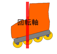 というわけで、インラインスケートで前進中に爪先立ちすると、何も考えなくてもちょうど180°回転してくれるというわけである。もちろん、後ろへ進んでいるときに回転したいならば、進行方向側のかかとで立てば良いわけである。