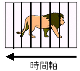 だから、このような赤い長方形の画像を並べた方向というものは「時間軸」を意味しているのである。それを、下の画像に示してみる。