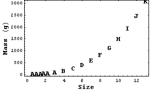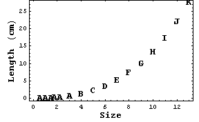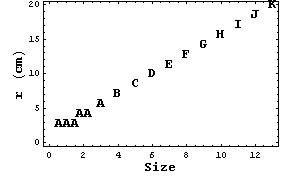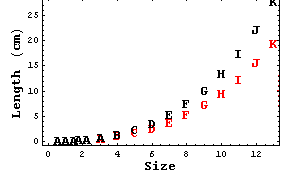 これをグラフにしたものを下に示す。ほぼ直線的にバストのサイズが増加しているのが判ると思う。
