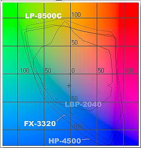 同じようなことを、「勢いにのってる」Epsonと元祖富士XeroxのEpson LP-8500CとFujiXeroxColorLaserWind 3310について行ってみた結果が次である。ちなみに、FujiXeroxColorLaserWind 3310の写真が見つからなかったので、下の写真にはFujiXeroxColorLaserWind 3320PSのものを用いた。