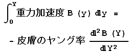 ここで、胸板にそって下向きにY軸をとり、バスト曲線をB(Y)で表すことにしよう。上の図をよく眺めるとわかると思うのだが、バストの形状= 皮膚の形状を示すバスト曲線をB(y)とすると、バスト曲線B(y)は実はこんな方程式を満たす。
