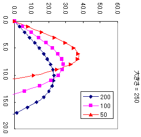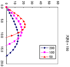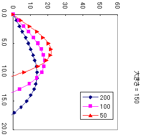 この図の中でバスト形状のプロットが三種類あるのは「皮膚のハリ = 皮膚のヤング率」として三種類の値を使ってみたからだ。以前