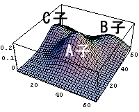 それに対して、先程と同じようにこんな「恋の山脈」を考えたらどうなるだろうか?A子、B子、C子という三つの山からなる「恋の山脈」である。