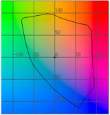 この結果を見ると、確かに若干ではあるがPM900Cの方がF870よりも出力できるab色平面が広いように見える。といっても、この図では見づらいと思うので、この二つを重ねて、