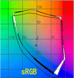ナルホド、確かにエメラルドグリーンというような色の辺りでPM900Cには出力できるけど(少なくともICCファイル上は)、sRGB・F870にはその色は出せないという領域もあるようである。そして、さっきのパンフレットをもう一度眺めてみると、確かにその色をパンフレットのメインの色としてあしらっていることがよくわかるだろう(ホントかいな?)。このエメラルドグリーンの服は伊達ではないのである。黒ずくめの男を表紙に使ってるのとは大違いの素晴らしさである。