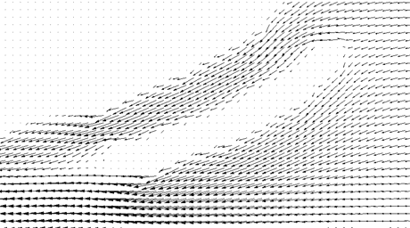 胸の谷間を水がジェット気流のように速く抜けていくことがわかる。割にどの領域でも、水流の速度分布は割に等しくなっている。