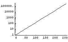 逆に明るさからRGB画像の数値データへの変換グラフは例えばこんな感じである。RGB数値で200と255と言っても実はその明るさは大違いであることがわかると思う。