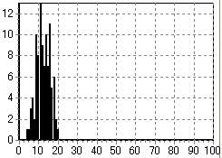 これを見ると、例えば、シートに書かれている数字が01〜24までの範囲の場合は、12回目位で半数の人がすでにビンゴになっていることが判る。一分に一個の数字というペースで読み上げていけば、5分過ぎには半数が終了している、というペースである。かなり速いペースである。