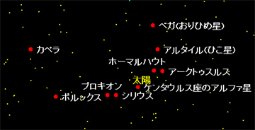 夏の夜空を見上げてみて下さい。三つの星が大きな三角形を夜空に描いているのが見えるでしょうか?その中で一番明るい星がこと座のベガ、七夕に逢い引きをする「織姫」です。
