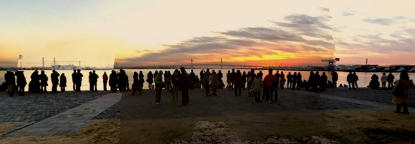横浜 みなとみらいに行くと、初日の出を待ち、人がたくさん立っています。ゴドーならぬ赤く染まる夕日のような朝日を待って、人それぞれ立ち続けています。水平線の向こうから太陽が上がるまでの間、ずっと何かを願っているかのように、人たちがたくさん立っています。