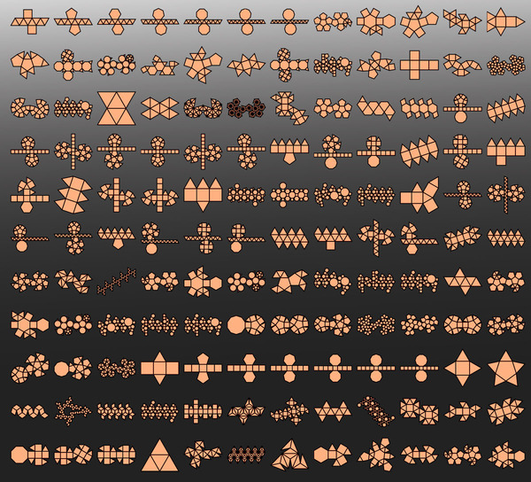 ミカンを食べる正月や冬には、こうした「みかんの皮剥きアート」を自分で考え・作り出したくなる人も多いと思います。そこで、今日は、(形状的にミカンに近い=球に近い)多面体を展開した図面をWolfram Mathematicaのサンプルを用いて描いてみました。