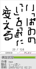 第三回に引き続き、第四回のらくがきボード展覧会です。みきゃこ★さんの見事ならくがきとか、ガリレオガリレイのアニメーション(これは再生して眺めてみましょう)とか、白川静(偽名)さんの漢字シリーズとか色々です。