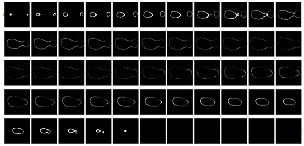 立体的な3次元物体を、あたかもCTスキャンのように断面にして、それらを重ねて眺めてみると、元の立体的な姿が蘇ります(参考:「透明シート印刷+オイル浸け」で「立体プリント」、「おっぱい曲面方程式」を立体(モドキ)プリンタで出力してみた!)。