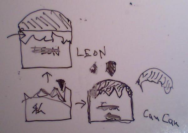 右の図は、ホワイトボードに描かれた「決して理想的ではないデコボコな”私”」(左下)が読む、雑誌LEON(左上) と CanCam(右)の違いである。