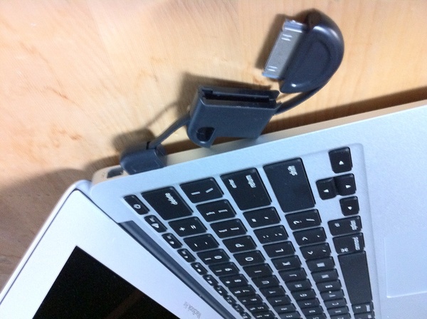 「100円玉サイズのiPhone接続ケーブル」で書いたように、数ヶ月前、秋葉原にある電脳雑貨ショップ「あきばお〜6号店」で100円玉サイズのiPhone接続ケーブルを買いました。それは、大きさはコインサイズで、iPhoneをUSBでコンピュータに接続し、充電や(ファイル転送やモデム接続といった)通信をするための接続ケーブルです。ちなみに、そのケーブルはお値段は630円ナリで、右の写真のようなケーブルになります。