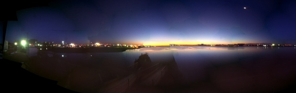 28日の早朝4時に、羽田空港に自転車に乗って行ってみました。寒さにブルブル震えながら、弁天橋から見た日の出間近な東の海は、意外に奇麗な景色かも。滑らかな水面に、波を描いていく船は、沼津の港で眺めてた景色に似ています。