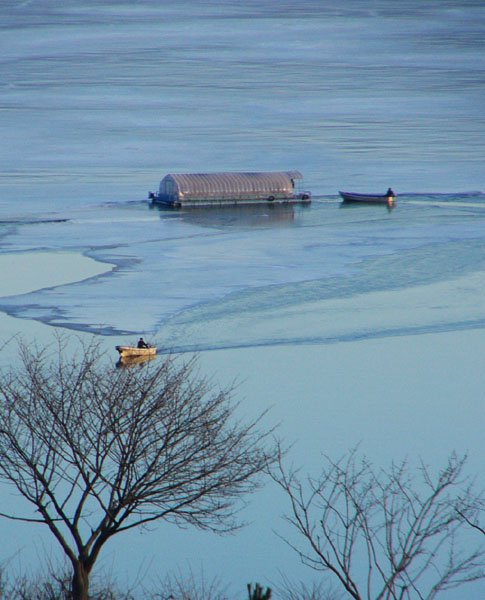 諏訪湖で日の出を眺めた。八ヶ岳の向こうから朝日がさしてくる。そんな朝日にデジカメを向けてシャッターを押してみる。少しきれい。そして、周りを眺めてみると、色んな山に朝日が差し始めてる。下を眺めてみると、諏訪湖では湖面をボートが滑つように動いてた。とても寒いけれど、きれいで静かな景色だ。