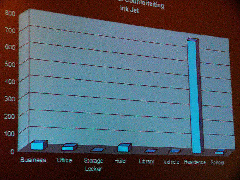 「午後プリンター購入、夜には偽札60枚使用」という記事を見て思い出した先週眺めたこんなスライド。スライドの内容は「偽札作りの犯人の年齢分布」「犯人が偽札作りを行った場所」「偽札作りの道具」。一番若い犯人は八歳とか、仕事場で作る人も多いとか、色んな面白いことが判る。