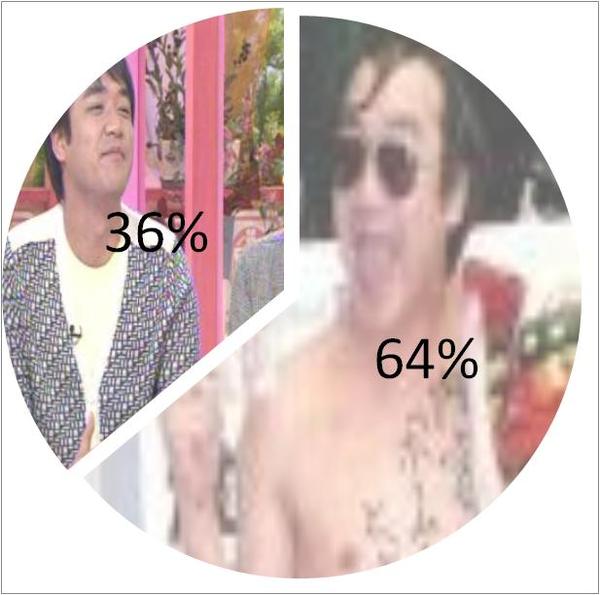 「たむらけんじ」で見る「東西の差」もしくは「蝸牛考」で行った(行っている)アンケート結果をビジュアル・グラフにしてみました。1/3が「地味目な」たむけんを「たむけん」だと思っていて、2/3が「色物」なたむけんが「たむけん」の印象だ、という結果でした。なるほど、こんな割合なんですね。