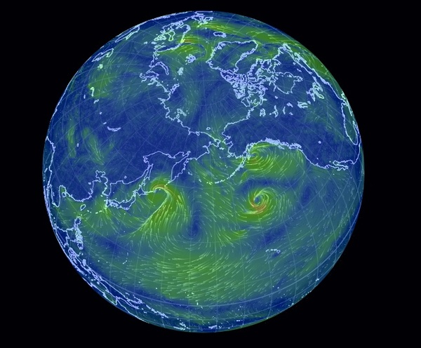 そんな法則を知った上で、東京都に吹く風の流れを美しく描き出す「東京風速」を眺めれば、風吹く地図上に、路線図や駅や階段を重ねてみたくなります。そしてまた、丸い地球上に吹く風を「世界風速」で見て、ありとあらゆる世界中の駅階段に吹き荒れて…(以下省略)。
