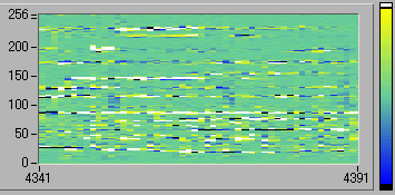 - 時間(横軸)vs周波数(縦軸)vs左右での音圧の差(色)