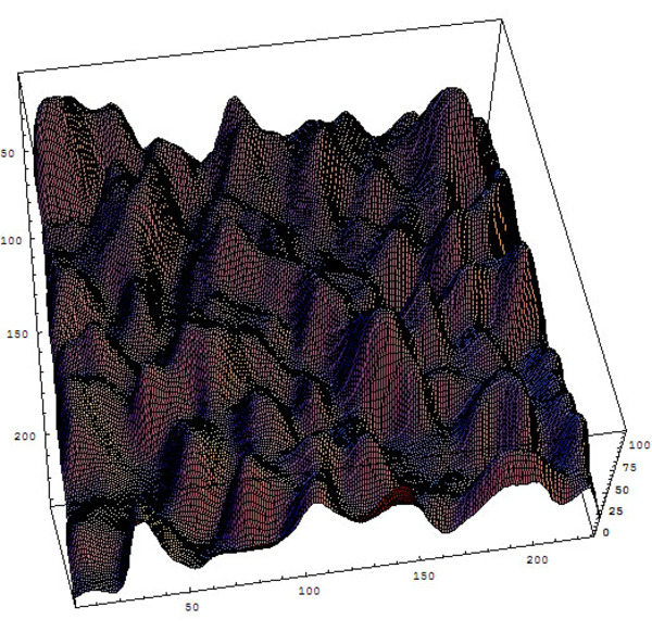 これは面白い!ということで、プラド美術館にある『モナ・リザ」とルーブル美術館にある『モナ・リザ」という「2枚の視差画像」から深度マップ(奥行きを示す画像)を作ってみたくなり、画像間の局所相関を用いて挑戦してみた結果が右の画像です。といっても、トライしてみたけれど、上手く・自然な「深度マップ」を作成することはできなかった…という具合です。