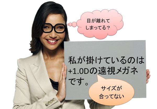 サイズが合わない近視用のメガネを掛けていると、目の間隔が妙に離れて平目顔に(外見上)見えてしまったり・目の感覚が過剰に狭まってプロポーションが悪いブサイク顔に見えてしまう…という現象もさらに起きてしまいます。