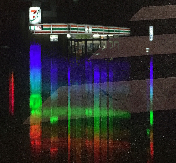 普段見慣れた色使いの「セブンイレブン」の赤・緑・橙色だって、分光的に波長分解して眺めてみると意外に新鮮なもの。…ただひとつの難点は「スマホを観つつの町歩き」は危険極まりない…というところでしょうか。