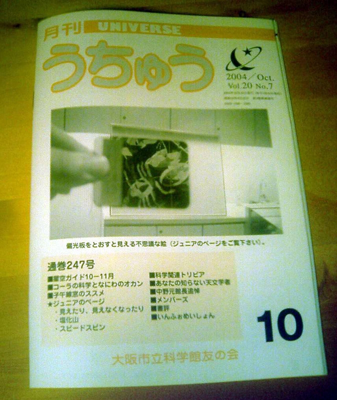 大阪市立科学館友の会の会報誌 月刊「うちゅう」用の文章を書いた。タイトルは