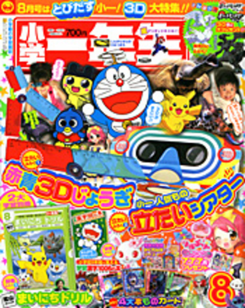 ”3D"とか「立体」といった言葉に惹かれるけれど、高くてよくわからないものを買うのもちょっとめんどうで…と思う人は、本屋へ走り、小学館「小学一年生 8月号」を買うといいかもしれません。なにしろ、平行視用のレンズメガネセットや、赤・シアンメガネ使用のアナグリフ立体画像閲覧用”折りたたみ定規”といった面白付録がついて、税込み700円ポッキリ、だからです。