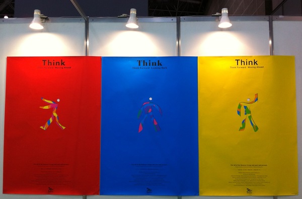 "Think. Think Forward, Moving AHead"という言葉、「考えろ。”先”を考えろ、”前”へ動け」という言葉を夕暮れ間近の東京ビッグサイトで見つけ、写真に撮りました。 いつか見た、昔IBMの社屋の入り口の上に掲げられていたという"Think"という板=「この入り口を通るものは”考えろ”」という宣言を思い起こしました。