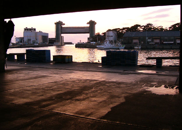 右の写真は、沼津港の市場から外の海を眺めてみた。市場の屋根と柱がまるで写真のフィルムのフレームのように景色を切り取っている感じがとても不思議で天然の展覧会が開催されているみたいだ。不思議な景色だ。