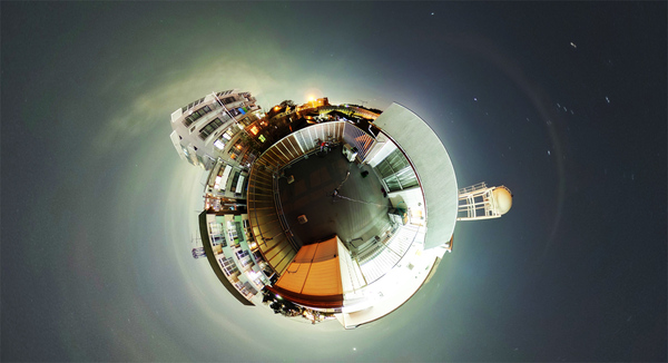 先日、周囲全方向を撮影することができるRicoh Theta Sを使い、24時間にわたり11段階の多段露出撮影画像からリトル・プラネット(とても小さな星を上空から撮影したような)風動画を作ってみました(Ricoh Theta S で24時間のHDR(多段露出)撮影をして遊んでみる!?)。けれど、そんな風に景色を離れたところから第三者的・客観的に眺めるのではなくて、その場に立って一人称的に景色を眺めたくなりました。そこで、合成した高画質4K動画をYoutubeに(360度映像だというタグを付けて)アップロードしてみました。