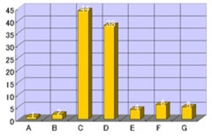 」というマンガが好きなので、「Kiss」というマンガ雑誌を読んでいます。Kissはおそらく20~30歳くらいの女性を読者ターゲットとしている雑誌ですから、30代後半男性の私としては、少し読み辛く感じたりもする雑誌です(高校~大学院時代は「花とゆめ」を読んでいました…)。最近、このKISSの末尾広告ページにアップルC・Dという、バストにかぶせバストを二回りくらい大きくする「バスト増大化パーツ」の広告が掲載されています。そして、宣伝の中に「彼女にするなら何カップ?」「2005年6月に渋谷で20~30代の男性に聞いてみました」という街角アンケートの結果が掲載されているのです。そのアンケート結果が、右上のグラフです。横軸は「カップ」で、縦軸が(そのカップを支持した)「人数」です。宣伝中には、このグラフを使って「断然CカップDカップが支持されている」と書かれていました。