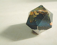 たとえば、Texture Mapなどから、さまざまな画像ファイルをダウンロードして、地球や月や火星などの天体の地図をもとに小さな正二十面体を作ってみても面白いでしょう。あるいは、パノラマ写真から、水晶玉のように周囲の景色を中に封じ込めた不思議な正二十面体を作ることもできるでしょう。いろいろな使い方がきっとあります。"Icosahedron Worlds" は、好きな画像ファイルから正二十面体の展開図を作成し、20の顔を持つ小さな空間を作り出すWEBサービスです。